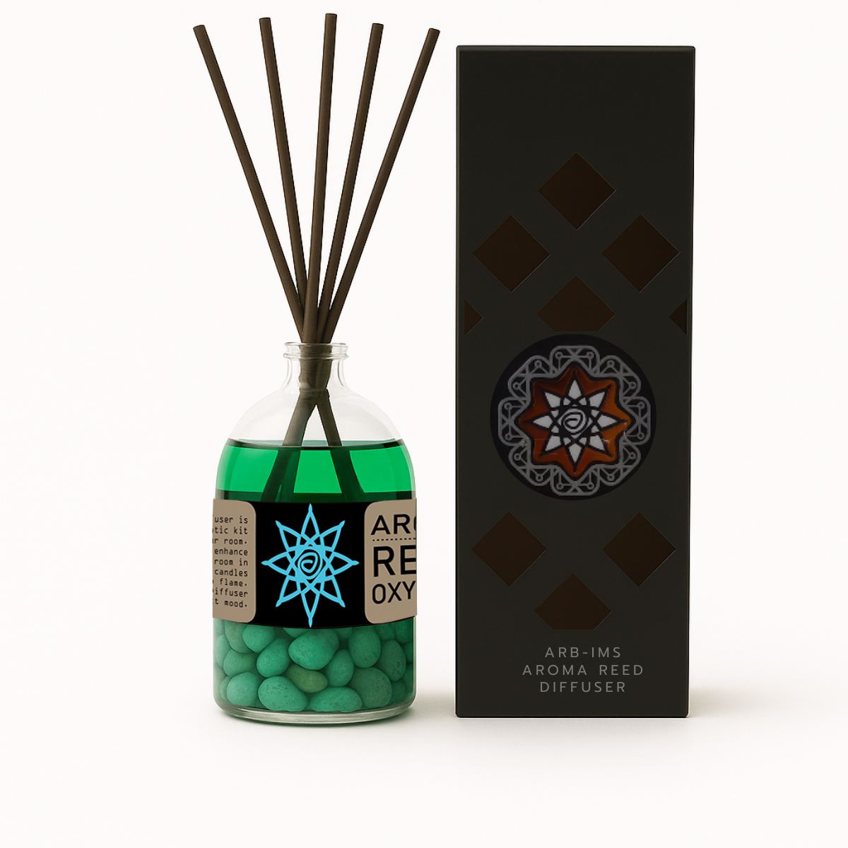 Net Volume 170 ml. Gross Weight 497 g. Size 6.8 x 6.5 x 22.4 cm. Aroma Reed Diffuser - Oxygen Properties : Arb-Ims Aroma Reed Diffuser is a luxurious aromatic kit perfect for pervading your room. It is a great way to enhance the smell of your room in substitution of scented candles as it requires no flame. Use Arb-Ims Aroma Reed Diffuser to create the perfect mood. Ingredients : Alcohol, Methoxy Methyl Butanol, Fragrance, Phenoxyethanol, Chlorphenesin Instructions : In this package : 8 reed diffuser sticks and one bottle of Fragrance oil 1. Open the cap of the Aroma Fragrance. 2. Place the sticks into the Fragrance oil bottle. 3. Flip the sticks and insert the dry ends into the bottle so that the saturated ends are exposed in the air and the scent would permeate your room. 4. To refresh the fragrance, simply repeat step 3. Caution : Please use an appropriate amount of sticks as the smell could be overwhelming in a small space. As the diffuser essential oil is flammable, Fragrance oil leaves marks on surfaces, please handle with care. Avoid contact with eyes. If contact occurs, rinse eyes thoroughly with water. Get medical attention if irritation persists. Do not consume. Keep out of reach of children. Storage : Keep at room temperature away from heat and direct sunlight.