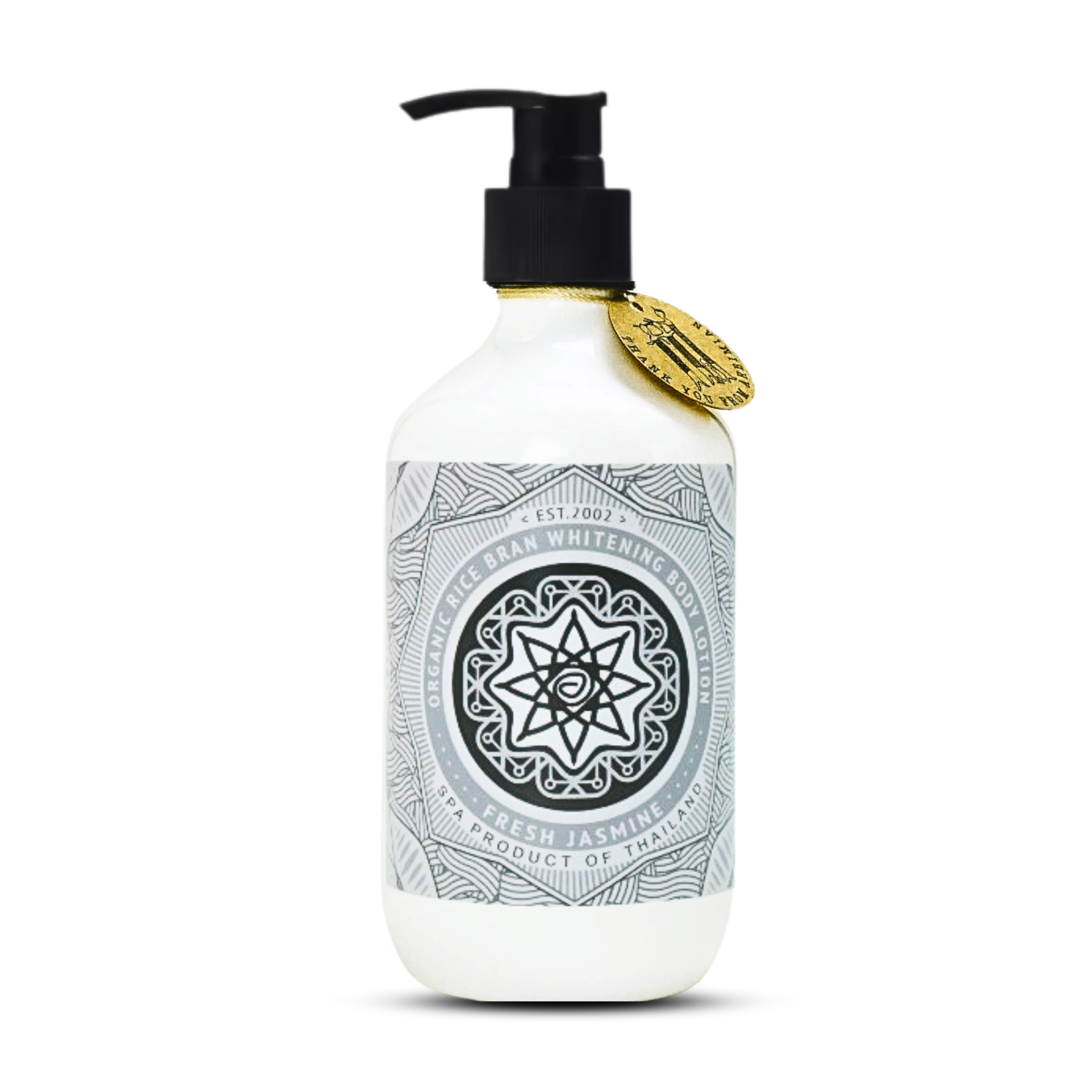 Net Volume 250 ml. Registration No. 12-1-6500030440 Organic Rice Bran Whitening Body lotion - Fresh Jasmine Properties : A lightweight whitening lotion rich in vitamins from organic rice bran extract that gradually and naturally brightens the skin. The skin is hydrated and protected from UV rays which are the main cause of wrinkles and dark spots. Yogurt extract stimulates the regeneration of skin cells leaving the skin brighten and smooth. Hydrate, rejuvenate, and prolong skin cell life with vitamins B3 and B5, olive oil, and antioxidant-rich grape seed oil. This special lotion absorbs quickly yet retains long-lasting moisture. Suitable for all-day use for a radiant and healthy skin. Fragrance. Instructions : apply the product on your body skin or on dry areas frequently as needed. Storage : Keep at room temperature away from heat and direct sunlight.