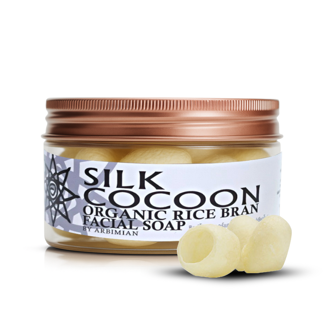 Contains 24 pcs. Gross Weight 108 g. Size 9.0 x 9.0 x 5.7 cm. Registration No 12-1-6500033380 Silk Cocoon Organic Rice Bran Facial Soap Properties : Silk Cocoon Whitening Facial Soap is made from yogurt extract which is enriched with protein, vitamin and minerals. It boosts the formation of new cells and whiten the skin with Vitamin B3. The creamy and delicate later of this natural soap is free from any foaming agent, bleaching agent, SLS, SLES and Parabens. The soap contains sorbitol to retain skin moisture. Your face feels soft and moisturized immediately after use. Ingredients : Silkworm Cocoon, Water, Propylene Glycol, Glycerin, Sorbitol, Sodium Stearate, Sodium Cocoyl Isethionate, Sodium Myristate, Sodium Palmitate, Sodium Laurate, Fragrance, Niacinamide, PEG-90M, Titanium Dioxide, Hydrolyzed Rice Bran Extract, Oryza Sativa Germ Oil. Instructions : Wet the face, insert a finger into the cocoon and apply gently on the face. Lather up until the face is thoroughly clean. Rinse off. Once the soap is used up, the remaining silk cocoon may be used for facial scrub and massage. (One piece of soap can be used for 3-5 times). Storage : Keep at room temperature away from heat and direct sunlight.